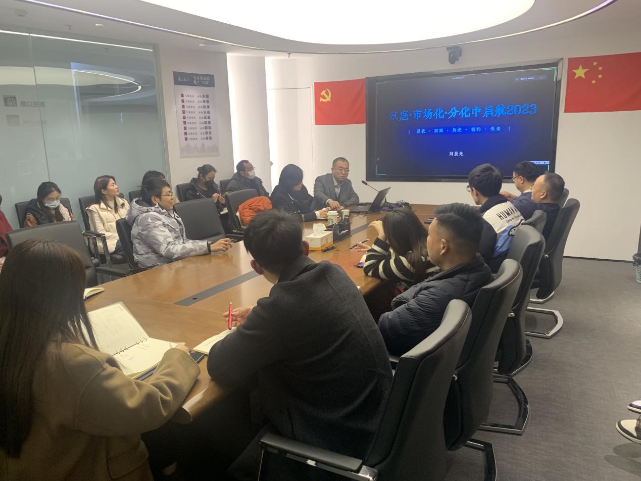為更好認(rèn)識房地產(chǎn)變局之下行業(yè)發(fā)展現(xiàn)狀及預(yù)期,切實(shí)提升行業(yè)知識水平,明確2023年公司投資業(yè)務(wù)的發(fā)展方向,2月24日下午,盛和房產(chǎn)組織召開《行業(yè)總結(jié)與市場研判》分享交流會。特邀資深戰(zhàn)略定位與管理咨詢專家——上??硕鹦畔⒓夹g(shù)有限公司企業(yè)戰(zhàn)略部總經(jīng)理劉晨光作專題輔導(dǎo)。盛和房產(chǎn)及全資、控股子公司全體員工參加。